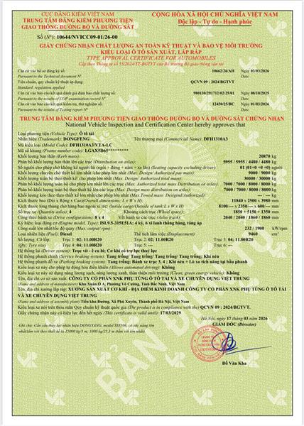 Ghi chú: Các thông số kỹ thuật có thể thay đổi theo tiêu chuẩn của Cục đăng kiểm Việt Nam