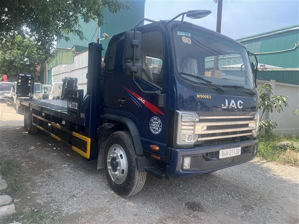 Xe JAC N900 PLUS E5 nâng đầu chở máy công trình có tải trọng hàng hoá là 9 tấn và trang bị động cơ Cummins có dung tích xylanh 4.4 lit. Sản phẩm đã được nhiều khách hàng tin dùng, với nhiều ưu điểm:
